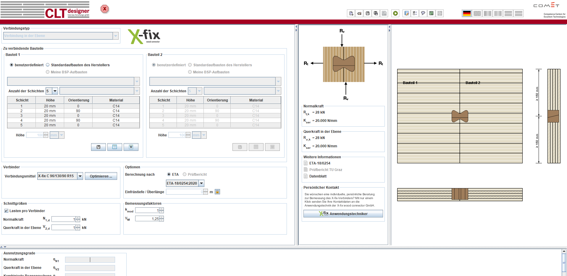 Sie können es uneingeschränkt nutzen. CLTdesigner wurde vom Kompetenzzentrum holz.bau forschungs gmbh Graz entwickelt und wird vom Kompetenzzentrum auch regelmäßig gewartet und upgedatet.